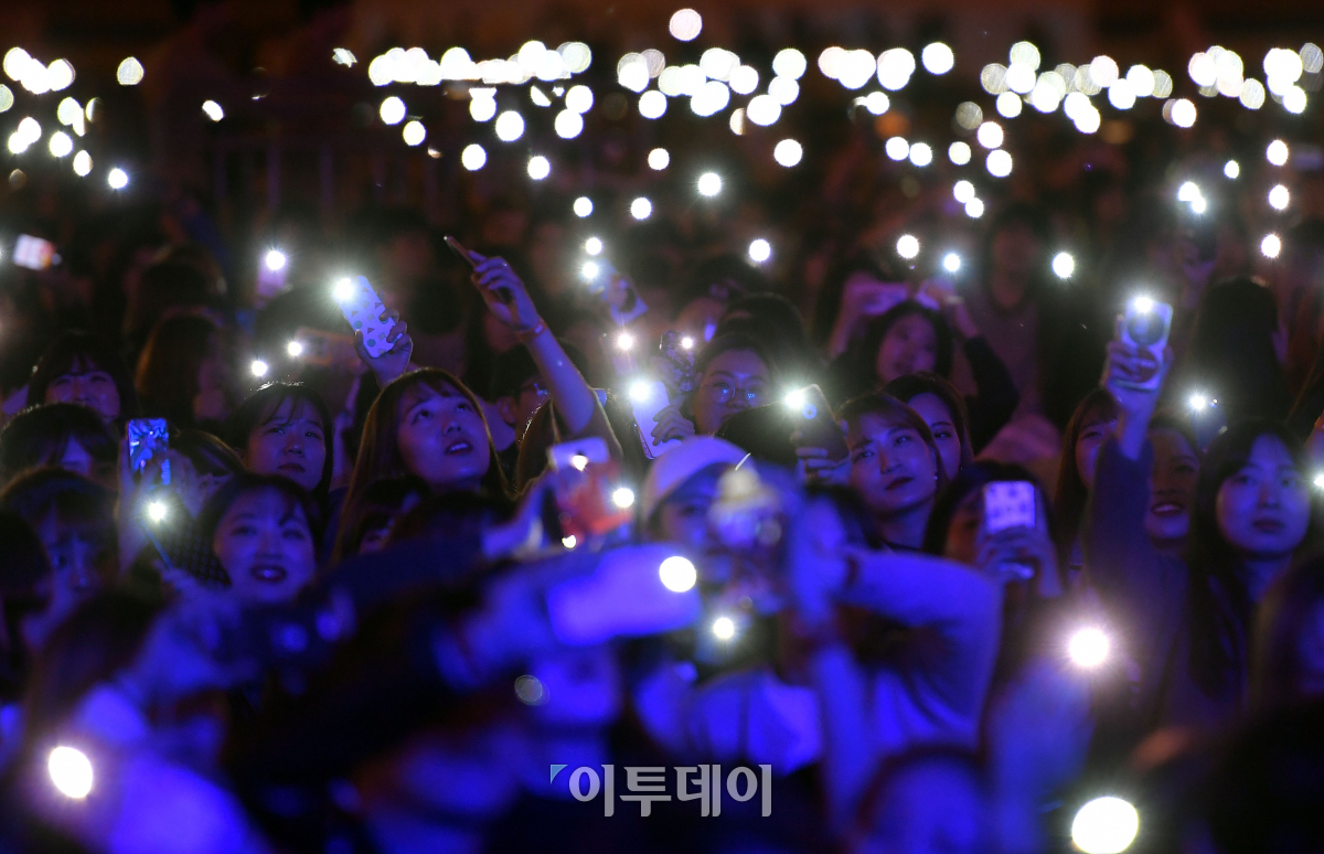 청춘을 위한 복합문화 페스티벌 '청춘아레나'가 28일 인천 남구 문학경기장에서 열린 가운데 관객들이 스마트폰 불빛을 흔들며 가수 헤이즈의 공연을 즐기고 있다. 이동근 기자 foto@