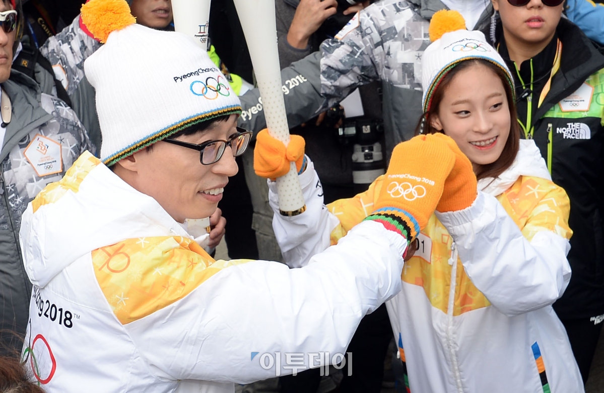 [포토] 유재석-유영 '성화들고 하트'