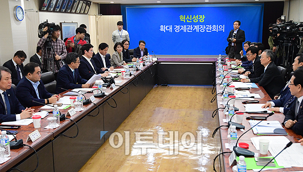김동연 경제부총리 겸 기획재정부 장관이 2일 서울 동작구 숭실대 베어드홀에서 열린 확대경제관계장관회의에서 모두발언을 하고 있다. 기재부는 앞으로 매달 1회 민간이 함께하는 확대경제관계장관회의를 개최하고 4차산업혁명위원회, 일자리위원회, 지역발전위원회 등과 연계해 혁신 성장 대책을 위한 플랫폼을 체계적으로 추진할 방침이다. 고이란 기자 photoeran@