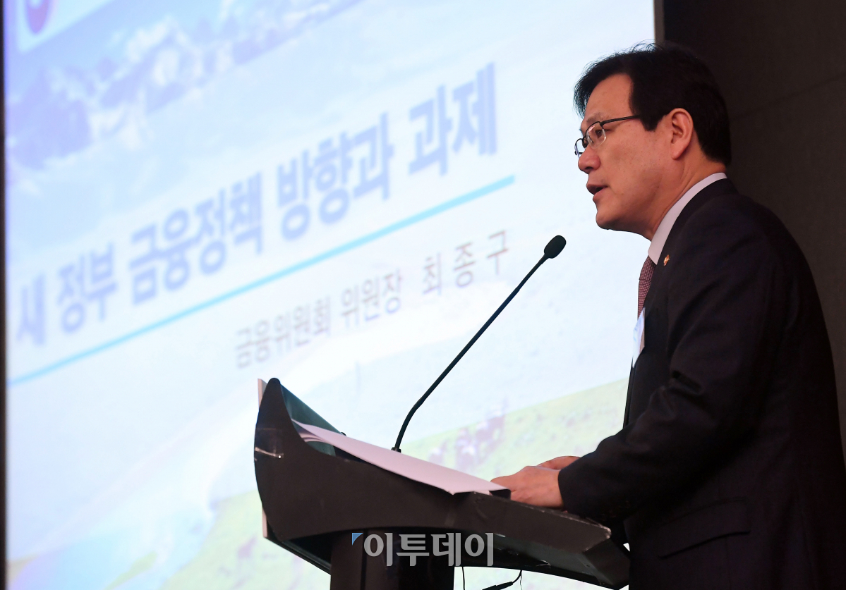 최종구 금융위원장이 6일 오전 서울 여의도 콘래드호텔에서 열린 초청 조찬간담회에 참석해 '새 정부의 금융정책 방향과 과제'를 주제로 강연하고 있다. 이동근 기자 foto@
