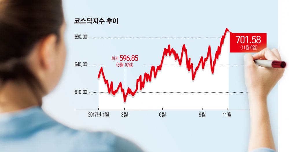 코스닥지수가 2016년 8월 이후 14개월 만에 700선을 돌파한 가운데, 추가 상승분에 대한 시장의 관심이 집중되고 있다. 2500선에 안착한 코스피지수의 올해 상승폭과 비교할 때 상대적으로 미흡했다는 분석이 제기되고 있지만, 내년에는 상승 국면에 본격 진입할 것이란 긍정적 전망이 제기되고 있다.