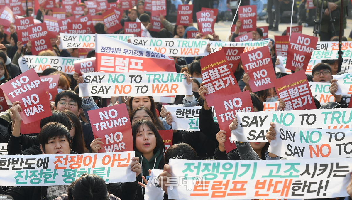 [포토] '전쟁위기 고조시키는 트럼프 반대한다'