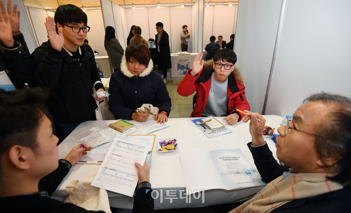 '청년층 일자리 창출을 위한 녹색기업 리크루팅'이 9일 경기 고양시 킨텍스에서 열린 가운데 취업준비생들이 상담을 받고 있다. 경기도가 환경분야 취업희망자들의 진로설계를 돕기 위해 개최한 이번 설명회는 도내 우수 환경기업 20곳이 참가하며, 1:1 채용상담을 통해 우수 인재는 현장에서 면접을 통해 즉시 채용한다. 이동근 기자 foto@