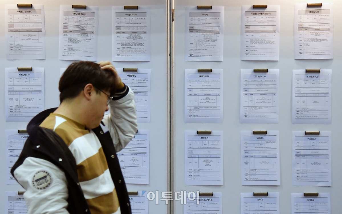 '청년층 일자리 창출을 위한 녹색기업 리크루팅'이 9일 경기 고양시 킨텍스에서 열린 가운데 한 취업준비생이 채용게시판을 살펴보고 있다. 경기도가 환경분야 취업희망자들의 진로설계를 돕기 위해 개최한 이번 설명회는 도내 우수 환경기업 20곳이 참가하며, 1:1 채용상담을 통해 우수 인재는 현장에서 면접을 통해 즉시 채용한다. 이동근 기자 foto@