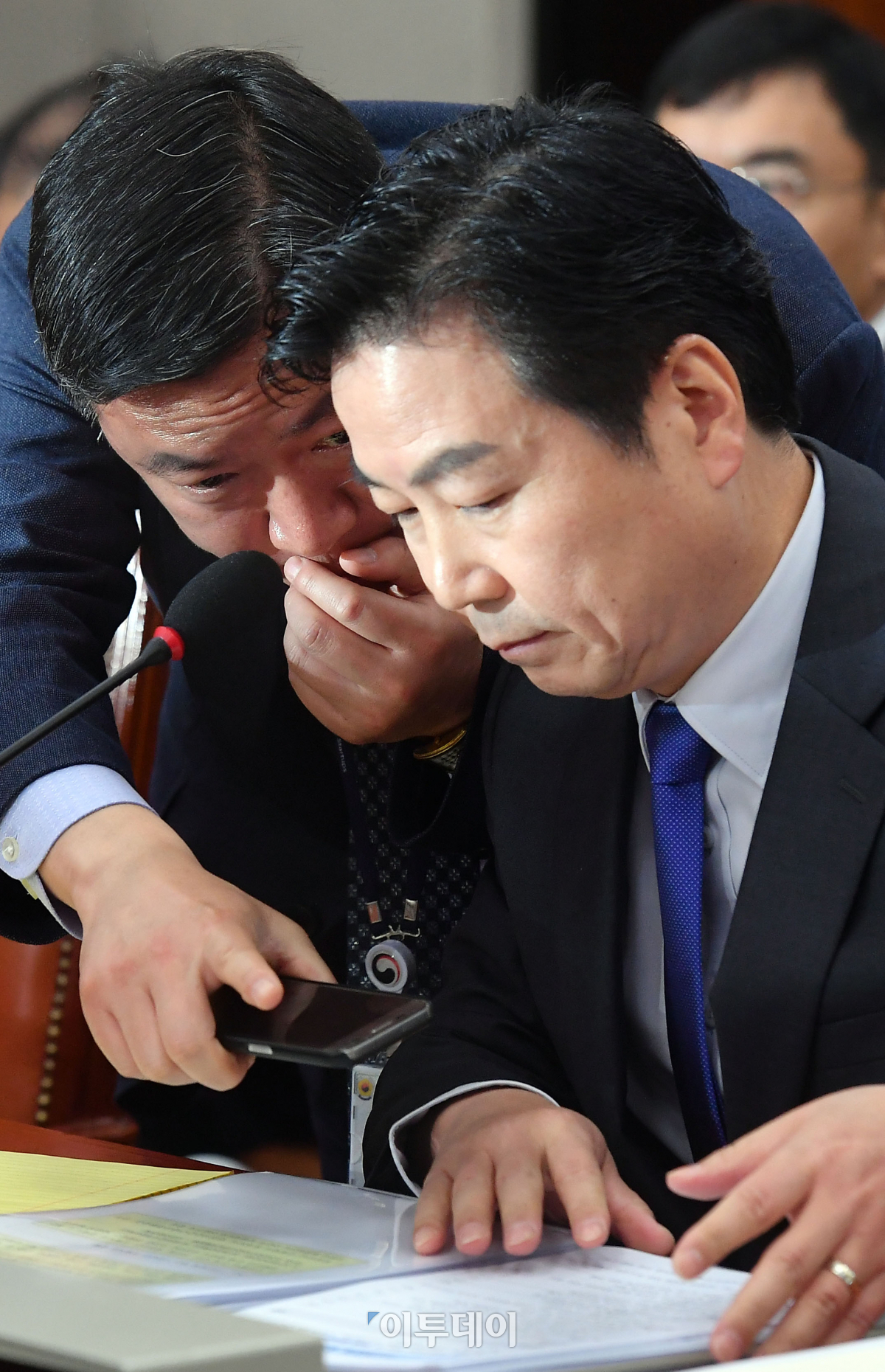 홍종학 중소벤처기업부 장관 후보자가 10일 서울 여의도 국회에서 열린 인사청문회에서 관계자와 자료를 살펴보고 있다. 이동근 기자 foto@