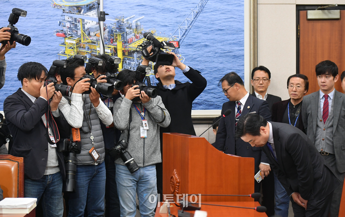 홍종학 중소벤처기업부 장관 후보자가 10일 서울 여의도 국회에서 열린 인사청문회에서 선서에 앞서 의원들을 향해 고개숙여 인사하고 있다. 이동근 기자 foto@
