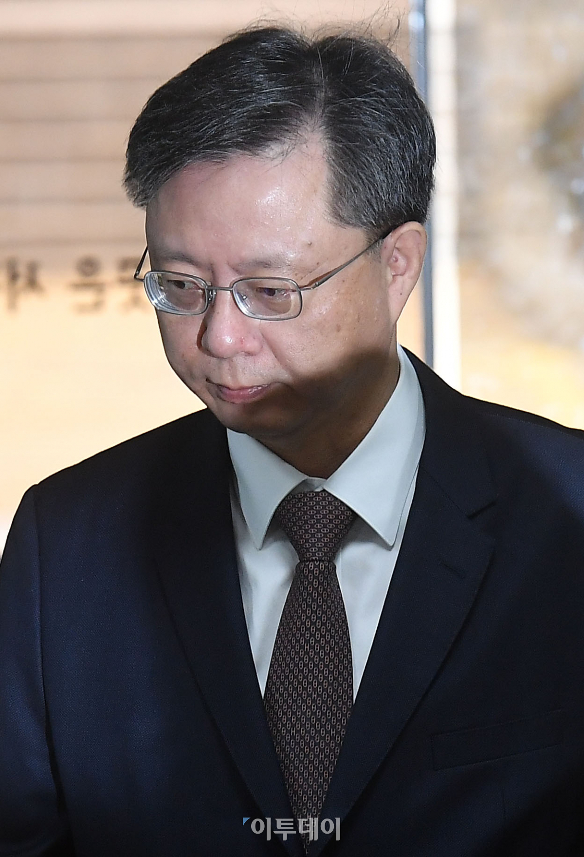 우병우 전 청와대 민정수석이 13일 서울중앙지법에서 열린 직권남용 및 직무유기 등에 대한 21차 공판에 출석하기 위해 법정으로 향하고 있다. 이동근 기자 foto@