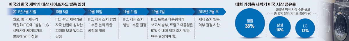 이러한 상황 속에서 미국으로 수출하는 삼성·LG 세탁기에 대한 세이프가드 표결이 21일 이뤄진다. 결과에 따라 연 10억 달러(약 1조1500억 원)에 이르는 미국 세탁기 매출에 막대한 타격이 예상된다.