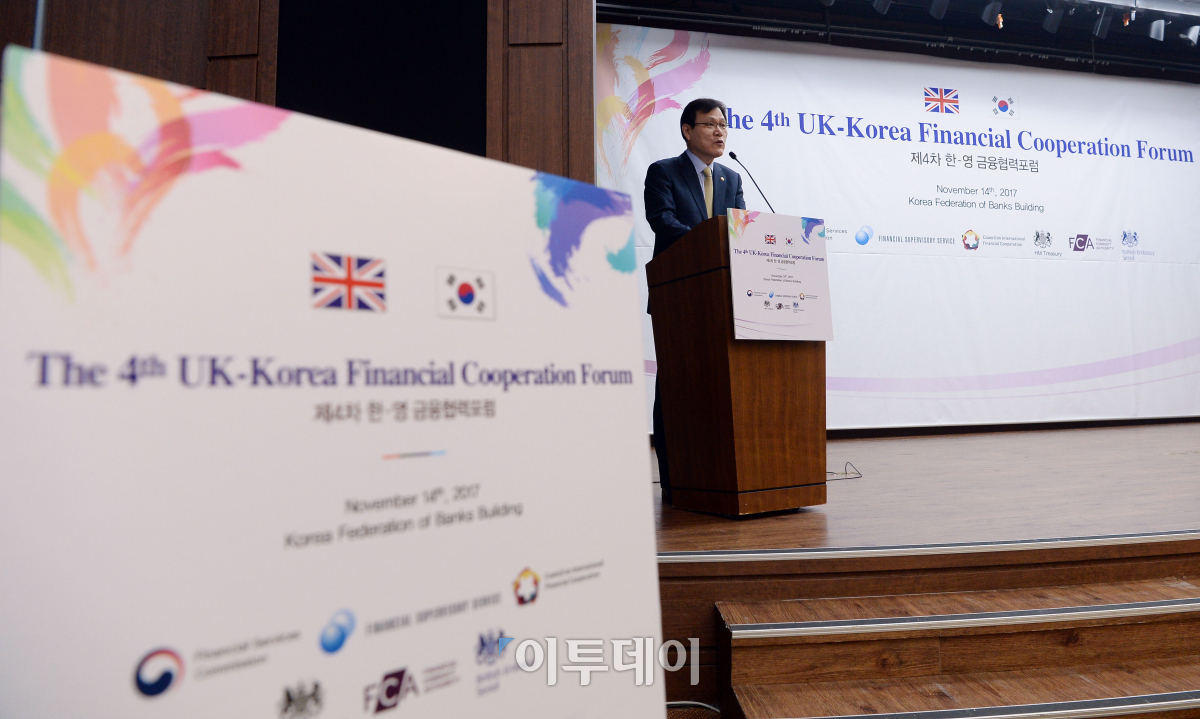 최종구 금융위원장이 14일 오전 서울 중구 은행회관에서 열린 제4차 한-영 금융협력포럼에서 개회사를 하고 있다. 이동근 기자 foto@