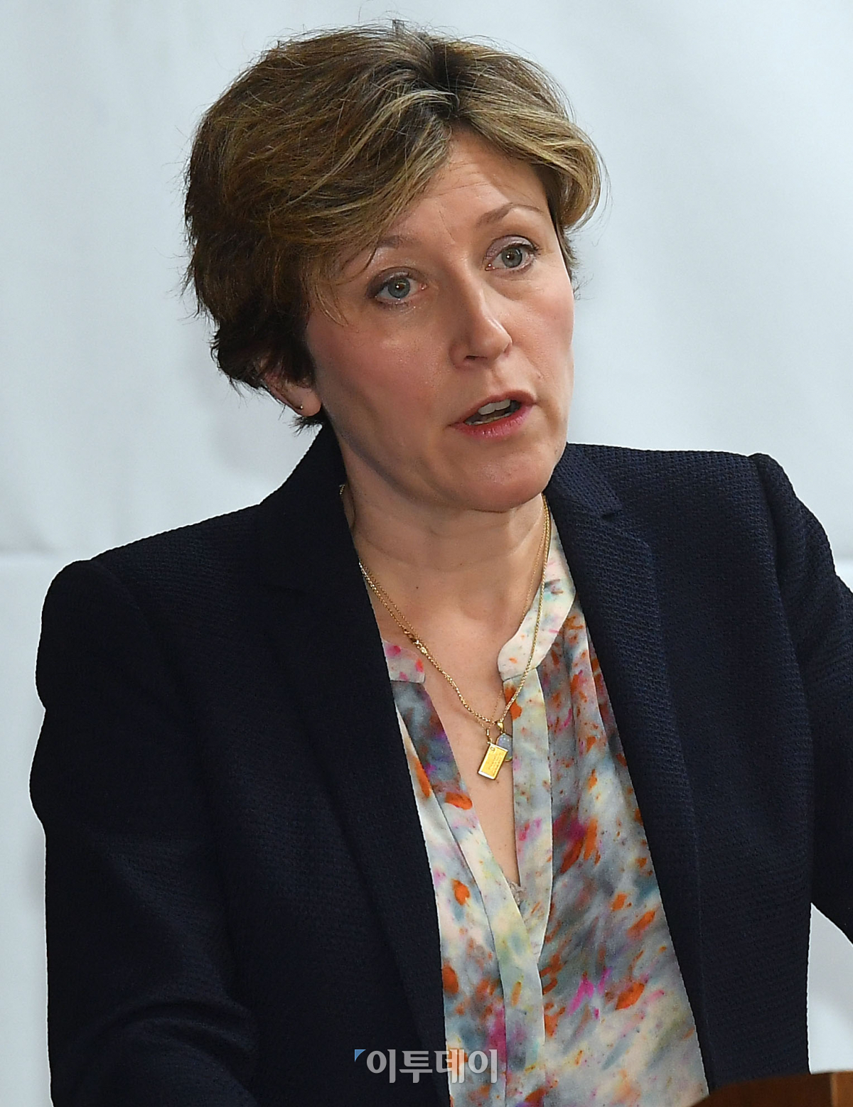 캐서린 브래딕 영국 재무부 차관보가 14일 오전 서울 중구 은행회관에서 열린 제4차 한-영 금융협력포럼에서 축사를 하고 있다. 이동근 기자 foto@