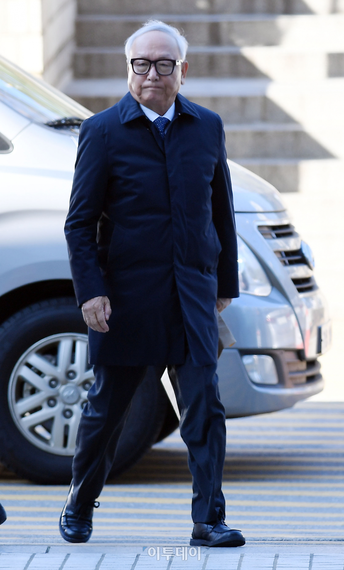 박근혜 정부 당시 국가정보원 특수활동비를 청와대에 상납해 국고손실을 초래한 혐의로 구속영장이 청구된 이병호 전 국정원장이 16일 영장실질심사를 받기 위해 서울중앙지법에 출석하고 있다. 이동근 기자 foto@