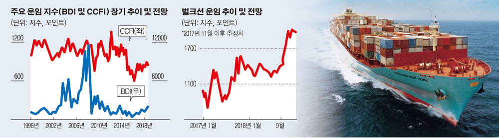 업계에서는 경기회복세가 당분간 이어질 것이라고 전망하고 있다. 내년 연평균 BDI 올해 보다 32% 상승한 1500 포인트로 예상되고 있으며 CCFI는 3.4% 상승한 850포인트 대를 유지할 것으로 관측된다.
