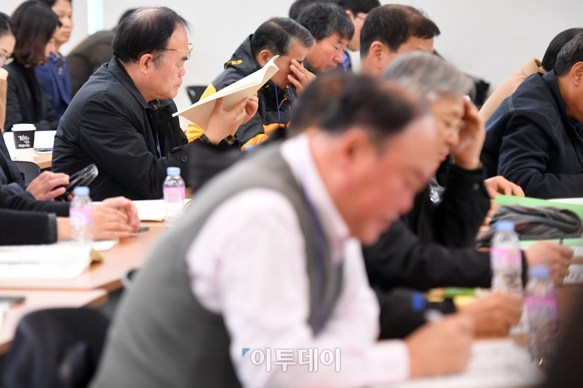 22일 서울 서초구 aT센터에서 열린 한미FTA 개정 관련 농축산업계 간담회에 참석한 농축산업계 관계자들이 자료를 살펴보고 있다. 이동근 기자 foto@