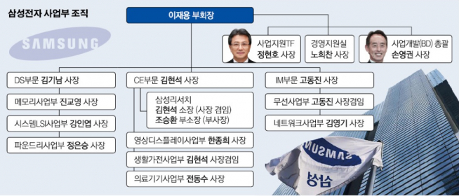 이번 조직개편에서 이재용 부회장이 손영권 사장에게 힘을 실어준 것은 최근 AI등 미래 먹거리가 산업 융합적인 측면이 강하기 때문으로 분석된다. 사업부별로 진행하게 됐을 때 대응하기 어렵기 때문에 이를 조율하고 책임질 수 있도록 영역을 터준 것이다.