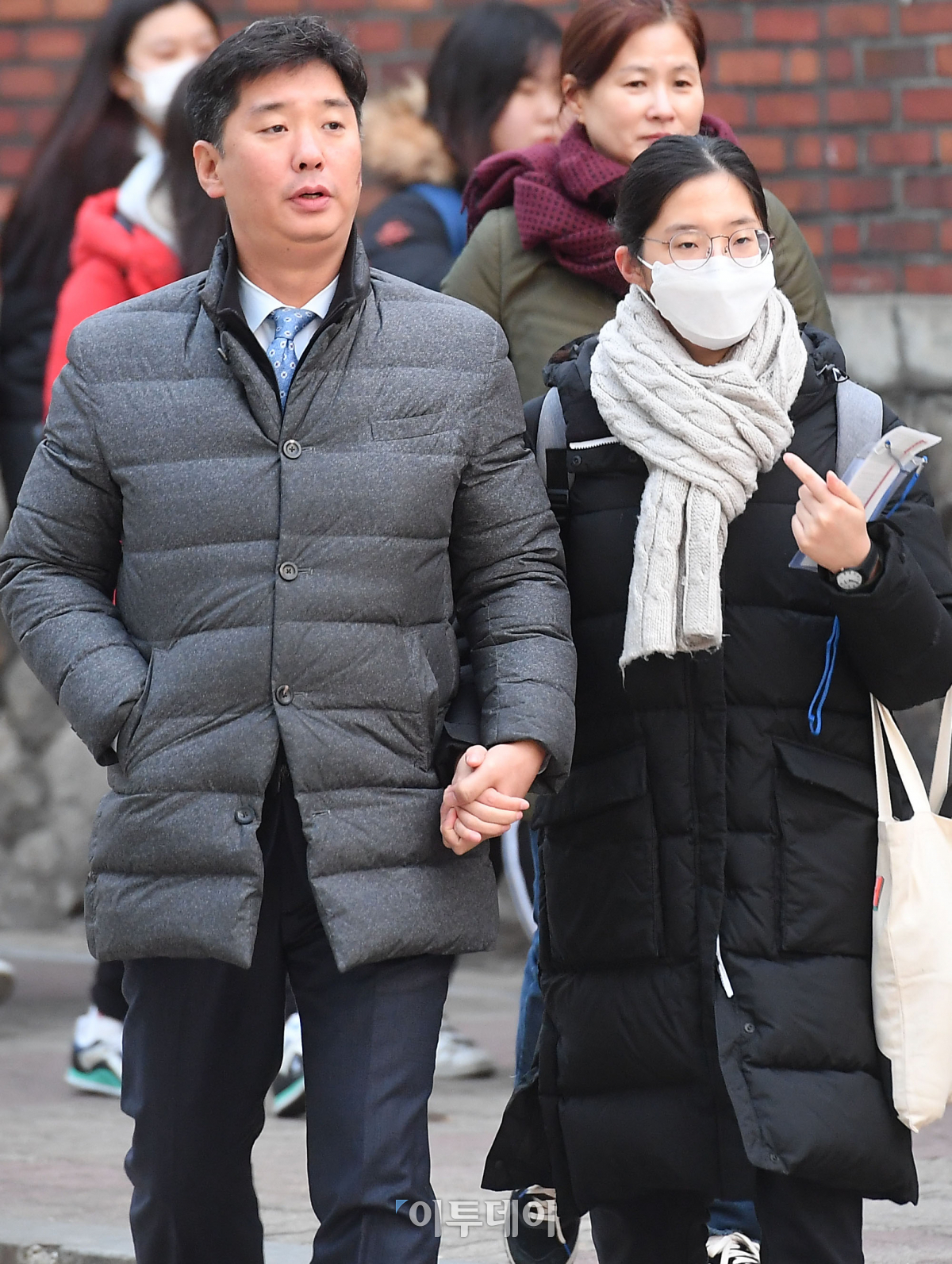 2018학년도 대학수학능력시험일인 23일 오전 서울 중구 이화여자외국어고등학교에서 한 수험생이 아버지의 손을 잡고 시험장으로 향하고 있다. 이동근 기자 foto@