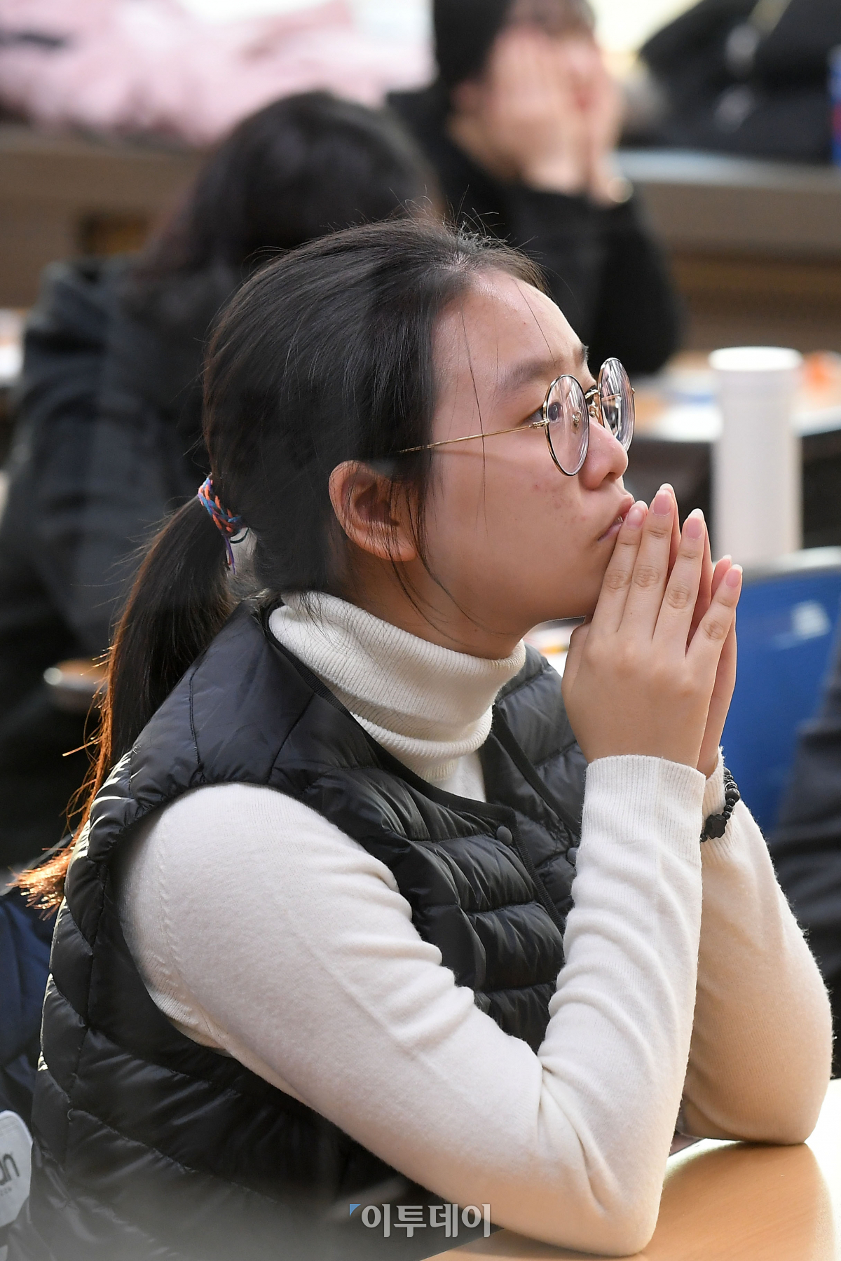 2018학년도 대학수학능력시험일인 23일 오전 서울 중구 이화여자외국어고등학교에서 수험생들이 시험 시작을 기다리고 있다. 이동근 기자 foto@