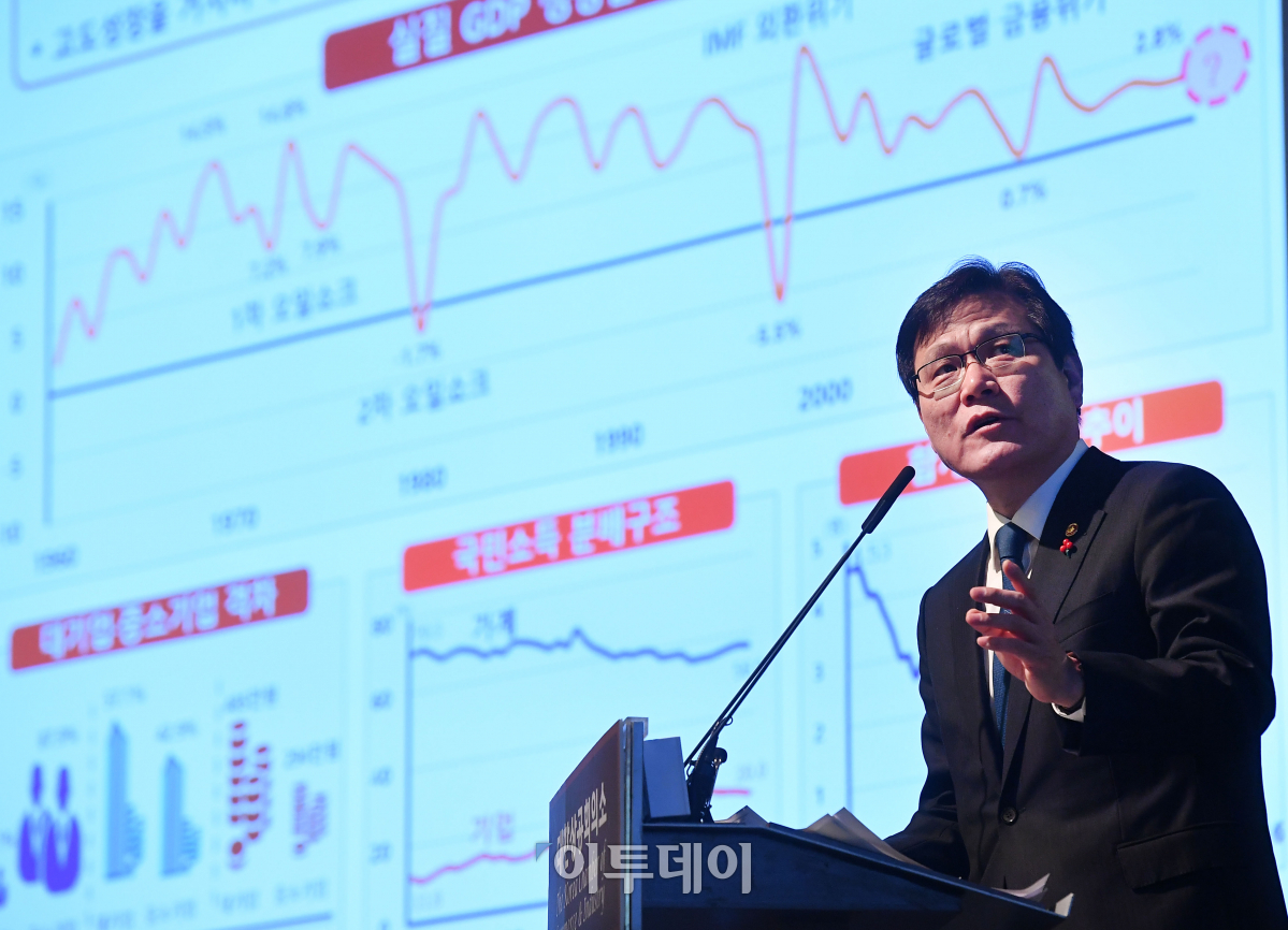 최종구 금융위원장이 24일 오전 서울 중구 대한상공회의소에서 열린 최 위원장 초청 간담회에 참석해 '품격있는 경제, 우리금융의 과제'를 주제로 강연하고 있다. 이동근 기자 foto@