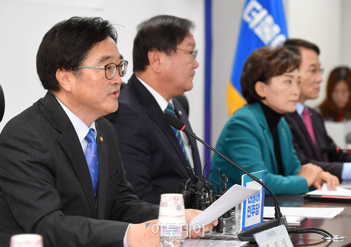 우원식 더불어민주당 원내대표가 27일 오전 서울 여의도 국회 의원회관에서 열린 주거복지로드맵 당정협의에서 모두발언을 하고 있다. 이동근 기자 foto@