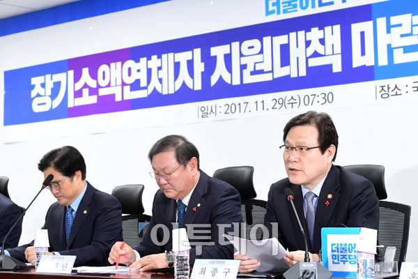 최종구 금융위원장이 29일 오전 서울 여의도 국회 의원회관에서 열린 장기소액연체자 지원대책 마련을 위한 당정협의에서 모두발언을 하고 있다. 고이란 기자 photoeran@