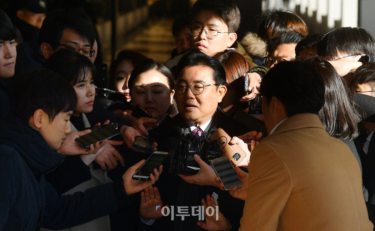 롯데홈쇼핑·GS홈쇼핑 등으로부터 뇌물을 수수한 의혹 등을 받는 전병헌 전 청와대 정무수석비서관이 4일 서울 서초동 중앙지검에 피의자 신분으로 출석하고 있다. 이동근 기자 foto@