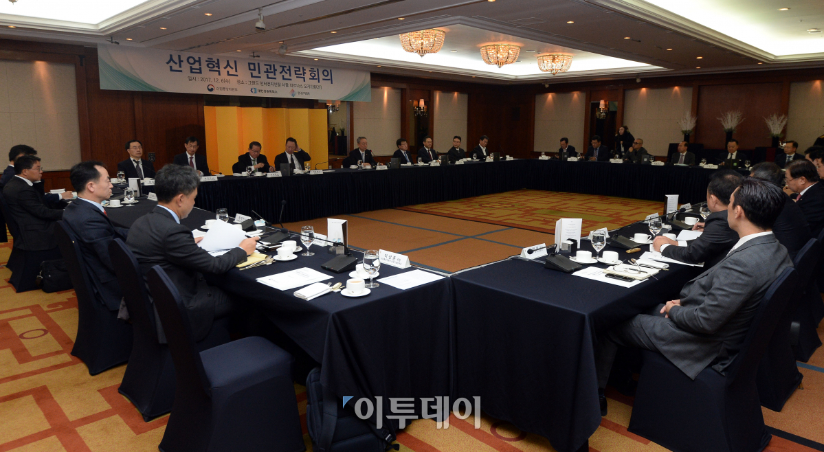 백운규 산업통상자원부 장관이 6일 오전 서울 강남구 그랜드인터컨티넨탈 호텔에서 산업혁신 민관전략회의를 주재하고 있다. 이동근 기자 foto@