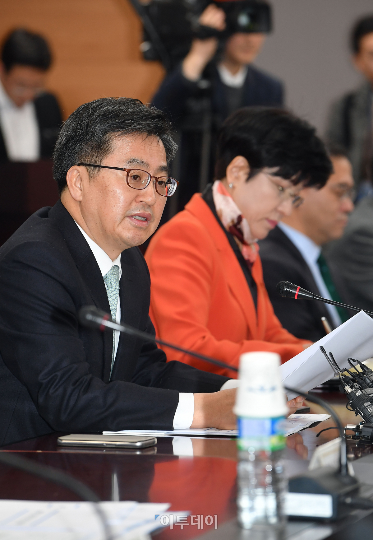 김동연 경제부총리 겸 기획재정부 장관이 8일 오전 서울 종로구 정부서울청사에서 열린 산업경쟁력 강화 관계장관회의에서 모두발언을 하고 있다. 이동근 기자 foto@