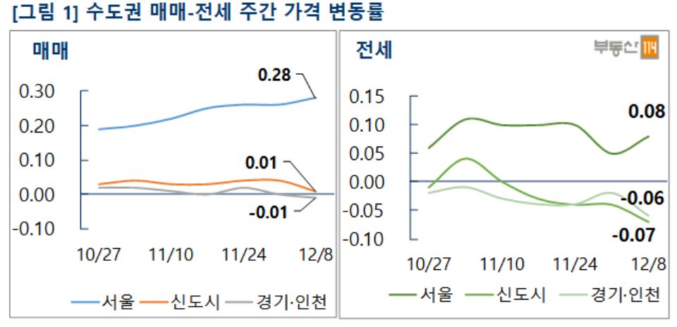 김민영 부동산114 선임연구원은 “시장 관망세는 여전하지만 재건축 강세와 꾸준한 실수요로 서울 아파트 가격 상승세는 쉽게 꺾이지 않을 전망”이라며 “이달 중 임대차 시장 안정화 방안이 추가 발표되는 가운데 당분간은 지금과 같은 분위기를 이어갈 것으로 보여진다”고 설명했다.
