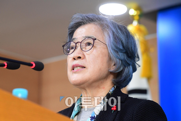 박은정 국민권익위원장이 12일 서울 종로구 정부서울청사에서 부정청탁금지법 시행 1년의 변화와 발전방안을 주제로 대국민보고 브리핑을 하고 있다. 고이란 기자 photoeran@