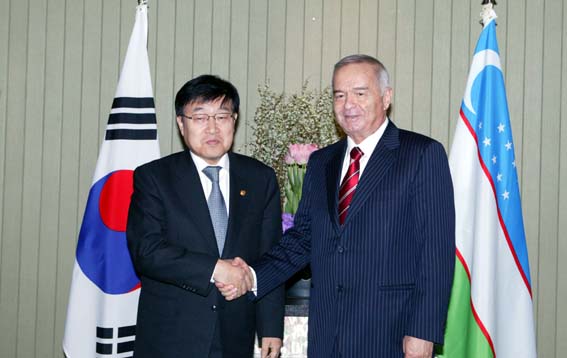 김영주 산업자원부 장관은 25일 오후 5시 30분 서울 롯데호텔에서 카리모프(Karimov) 우즈벡 대통령의 예방을 받고, 한-우즈벡 양국간 에너지 자원협력 방안에 관해 의견을 교환했다.