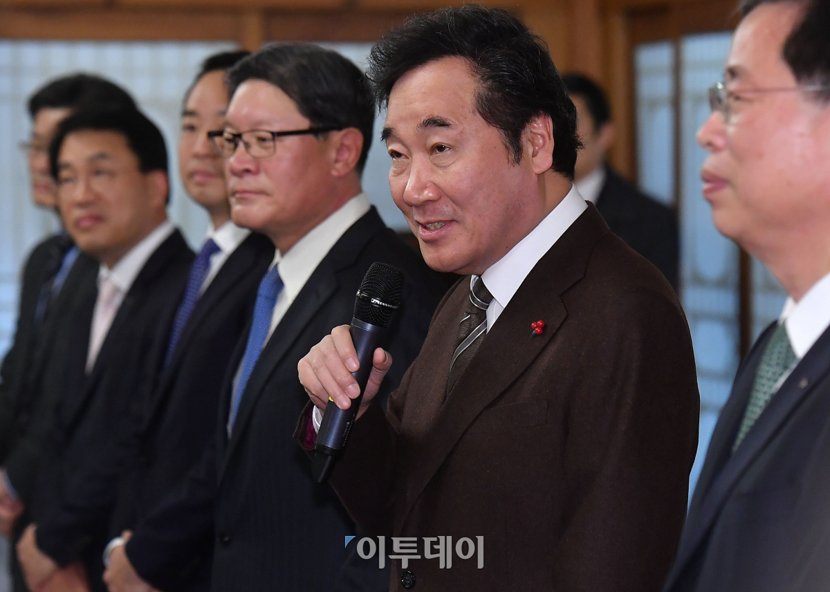 이낙연(오른쪽에서 두 번째) 국무총리가 15일 서울 삼청동 총리공관에서 열린 지속가능발전기업협의회 회원 CEO 오찬간담회에서 인사말을 하고 있다. 이동근 기자 foto@
