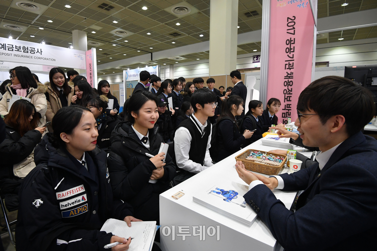 2017 공공기관 채용정보 박람회가 20일 서울 강남구 코엑스에서 열린 가운데 취업준비생들이 채용상담을 받고 있다. 정부가 마련한 이번 박람회는 한전, 인천국제공항공사, 중소기업은행 등 120여개 주요 공공기관이 참여, 청년 구직자들에게 기관 업무 설명과 채용상담 등의 기회를 제공한다. 이동근 기자 foto@