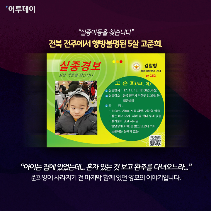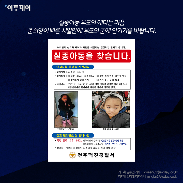 준희양이 빠른 시일안에 부모의 품에 안기기를 바랍니다.