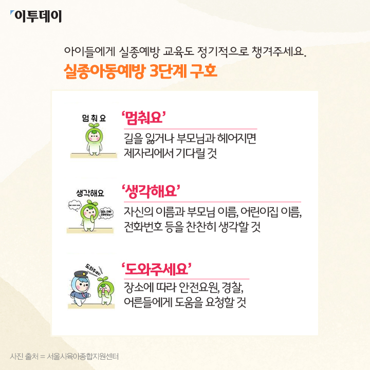 아이들에게 실종예방 교육도 정기적으로 챙겨주세요.