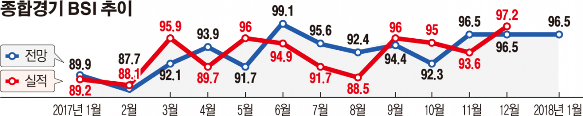 경기전망 지수는 2016년 6월 이후 내년 1월까지 무려 20개월 연속 100을 밑돌았다.