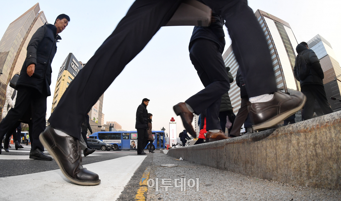 2018년 새해 첫 출근일인 2일 오전 서울 세종로 사거리에서 출근길에 나선 시민들이 힘차게 발걸음을 옮기며 일터로 향하고 있다. 이동근 기자 foto@