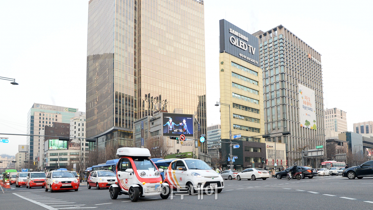새해 첫 출근일인 2일 오전 서울 세종로 사거리 일대에서 우편집배원들이 국민들에게 사랑과 희망의 전령사로 거듭나겠다는 다짐을 담아 4륜 전기차와 택배차량으로 퍼레이드를 실시하고 있다. 이동근 기자 foto@