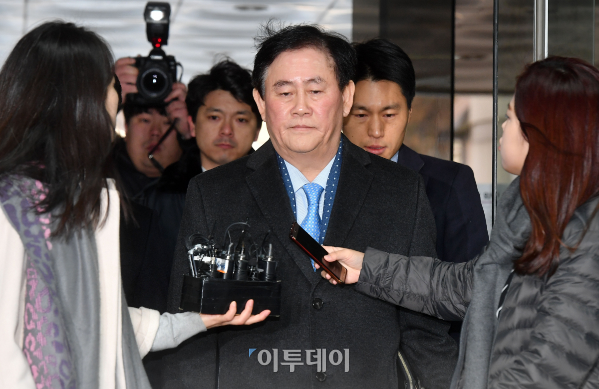 박근혜 정부 시절 국정원으로 부터 특수활동비 1억원을 받은 혐의로 구속영장이 청구된 최경환 자유한국당 의원이 3일 영장실질심사를 받기 위해 서울중앙지법에 출석하고 있다. 이동근 기자 foto@
