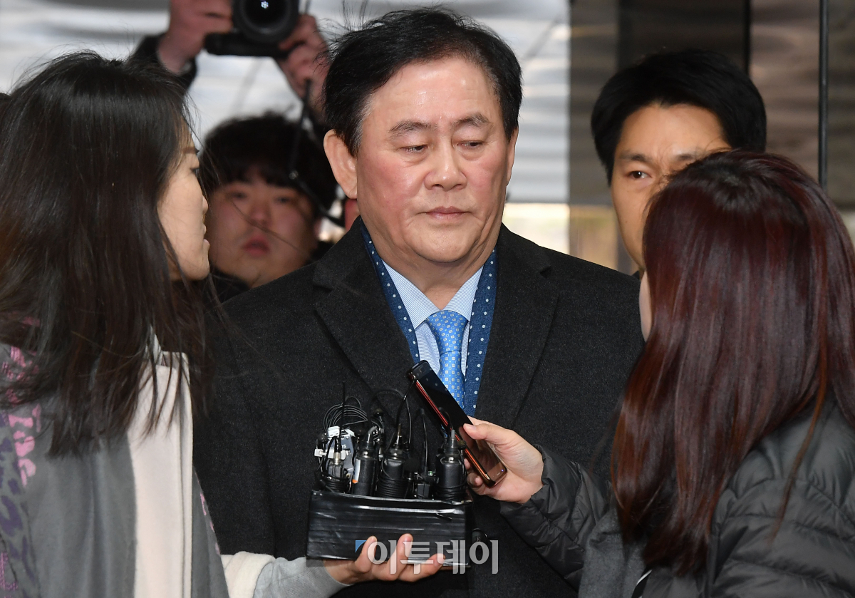 박근혜 정부 시절 국정원으로 부터 특수활동비 1억원을 받은 혐의로 구속영장이 청구된 최경환 자유한국당 의원이 3일 영장실질심사를 받기 위해 서울중앙지법에 출석하며 취재진의 질문을 받고 있다. 이동근 기자 foto@