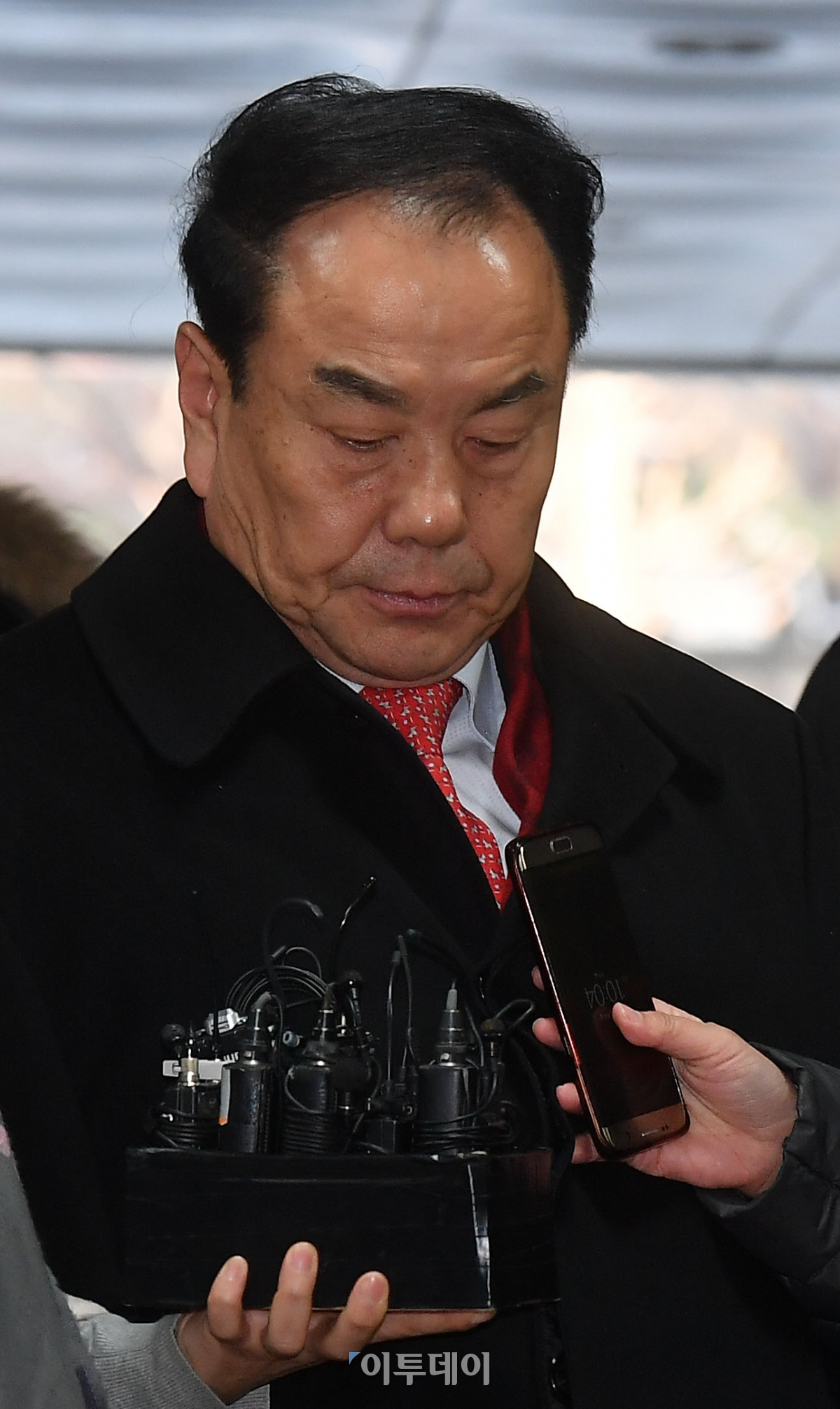 2014년 지방선거를 앞두고 20여 명으로부터 10억원대 금품을 수수한 혐의로 구속영장이 청구된 이우현 자유한국당 의원이 3일 오전 영장실질심사를 받기 위해 서울중앙지법에 출석하고 있다. 이동근 기자 foto@