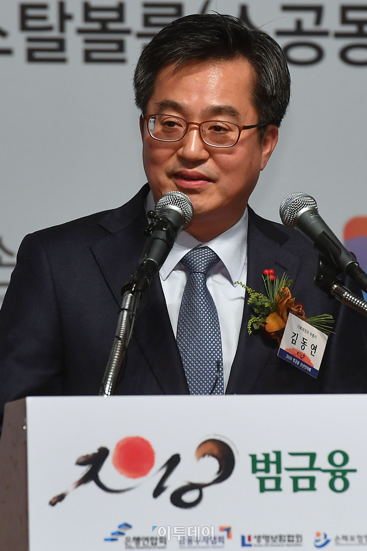 김동연 경제부총리 겸 기획재정부 장관이 3일 서울 소공동 롯데호텔에서 열린 2018년 범금융 신년인사회에서 신년사를 하고 있다. 이동근 기자 foto@