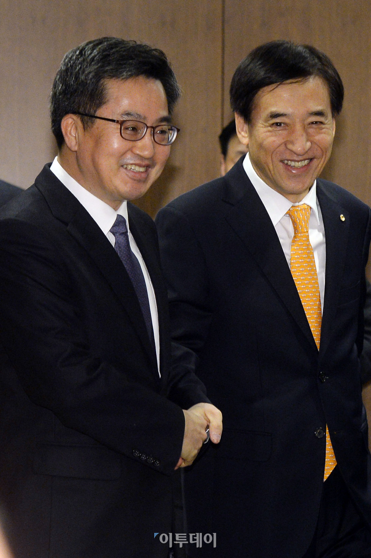 김동연(왼쪽) 경제부총리 겸 기획재정부 장관과 이주열 한국은행 총재가 4일 오전 서울 중구 은행회관에서 열린 조찬회동에 나란히 참석하고 있다. 이동근 기자 foto@
