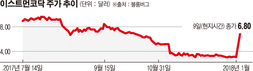가상화폐와 관련된 소식만 전해도 주가가 폭등한 다른 회사들처럼 투자자들은 코닥의 코닥코인 출시 발표에 열광했다. 코닥 주가는 이날 뉴욕증시에서 장중 최대 125%까지 뛰었으며 전일 대비 119% 폭등한 6.80달러로 거래를 마쳤다.