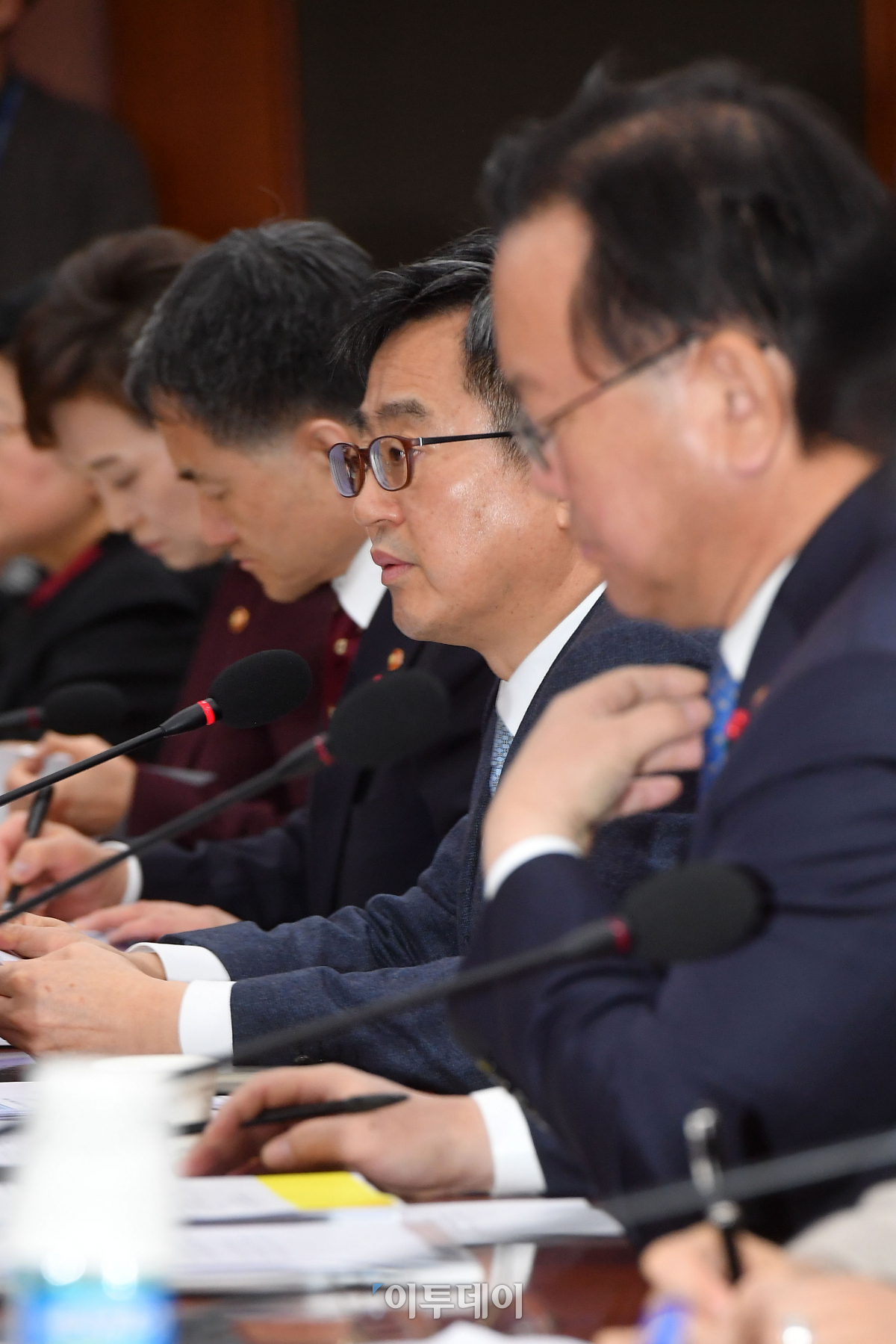 김동연(오른쪽에서 두 번째) 경제부총리 겸 기획재정부 장관이 11일 서울 종로구 정부서울청사에서 열린 경제관계장관회의에서 모두발언을 하고 있다. 이동근 기자 foto@
