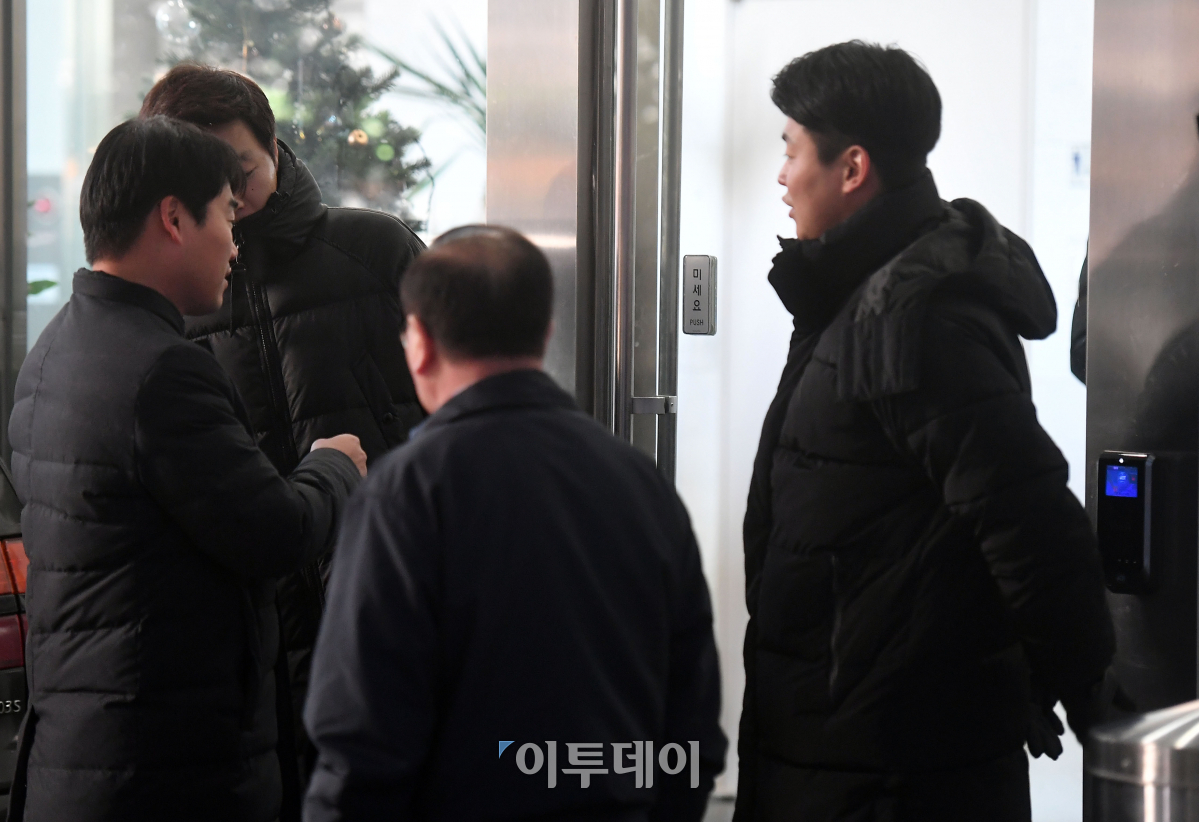 국세청이 가상화폐거래소 빗썸에 대해 세무조사를 진행중인 12일 서울 강남구 빗썸 사옥 주출입구 앞에서 사설보안요원들이 방문객의 신원을 확인하는 등 긴장감이 흐르고 있다. 한편 박상기 법무부 장관의 '가상화폐 거래소 폐쇄' 관련 주장에 대해 김동연 경제부총리가 이날 "아직 조금 더 부처간에 협의가 필요한 사안"이라 밝히며 일관성 없는 정부 입장에 혼란만 가중시킨다는 지적이 나오고 있다. 이동근 기자 foto@