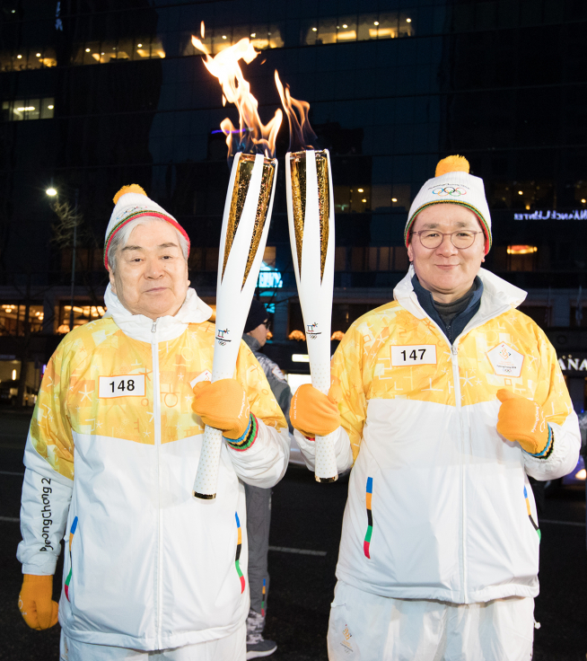 이들은 평창 동계올림픽 성화가 서울에 처음 입성한 13일 광화문 세종대로 구간에서 성화를 들고 달렸다. 국내 재계에서 부자가 함께 성화 봉송에 나선 것은 처음이다.
