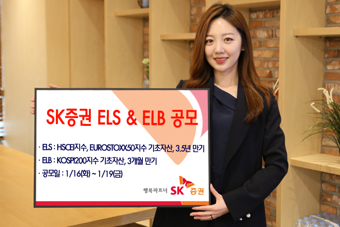 SK증권은 주가연계증권(ELS) 1종 및 주가연계파생결합사채(ELB) 1종을 공모한다고 16일 밝혔다. 공모 기간은 16일부터 19일까지 나흘간이다.