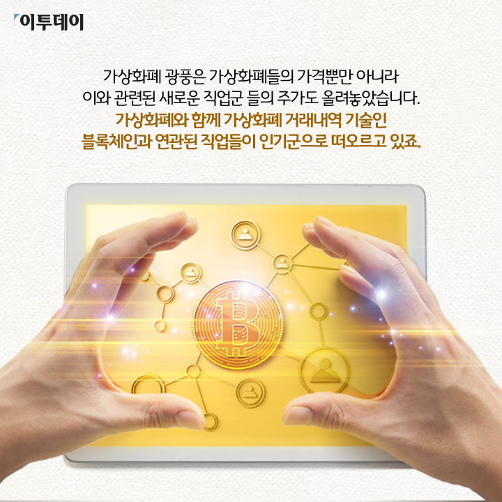 가상화폐 광풍은 가상화폐들의 가격뿐만 아니라 이와 관련된 새로운 직업군 들의 주가도 올려놓았습니다.