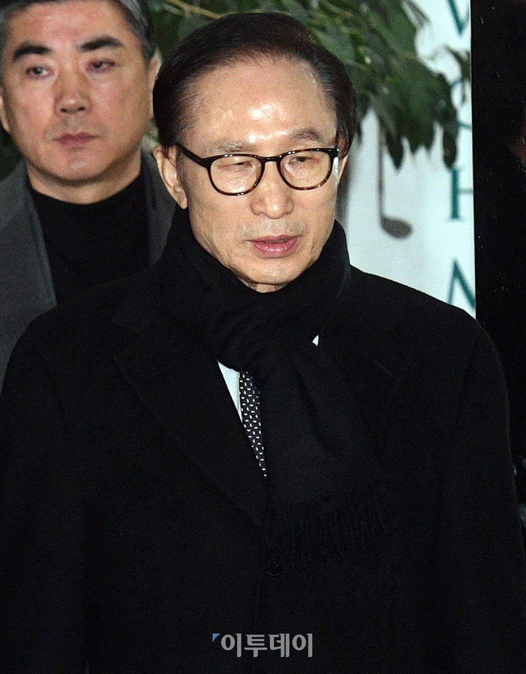 이명박 전 대통령이 17일 검찰의 특수활동비 수사 관련 입장을 밝힌 후 서울 강남구 삼성동 사무실을 나서고 있다. 이동근 기자 foto@