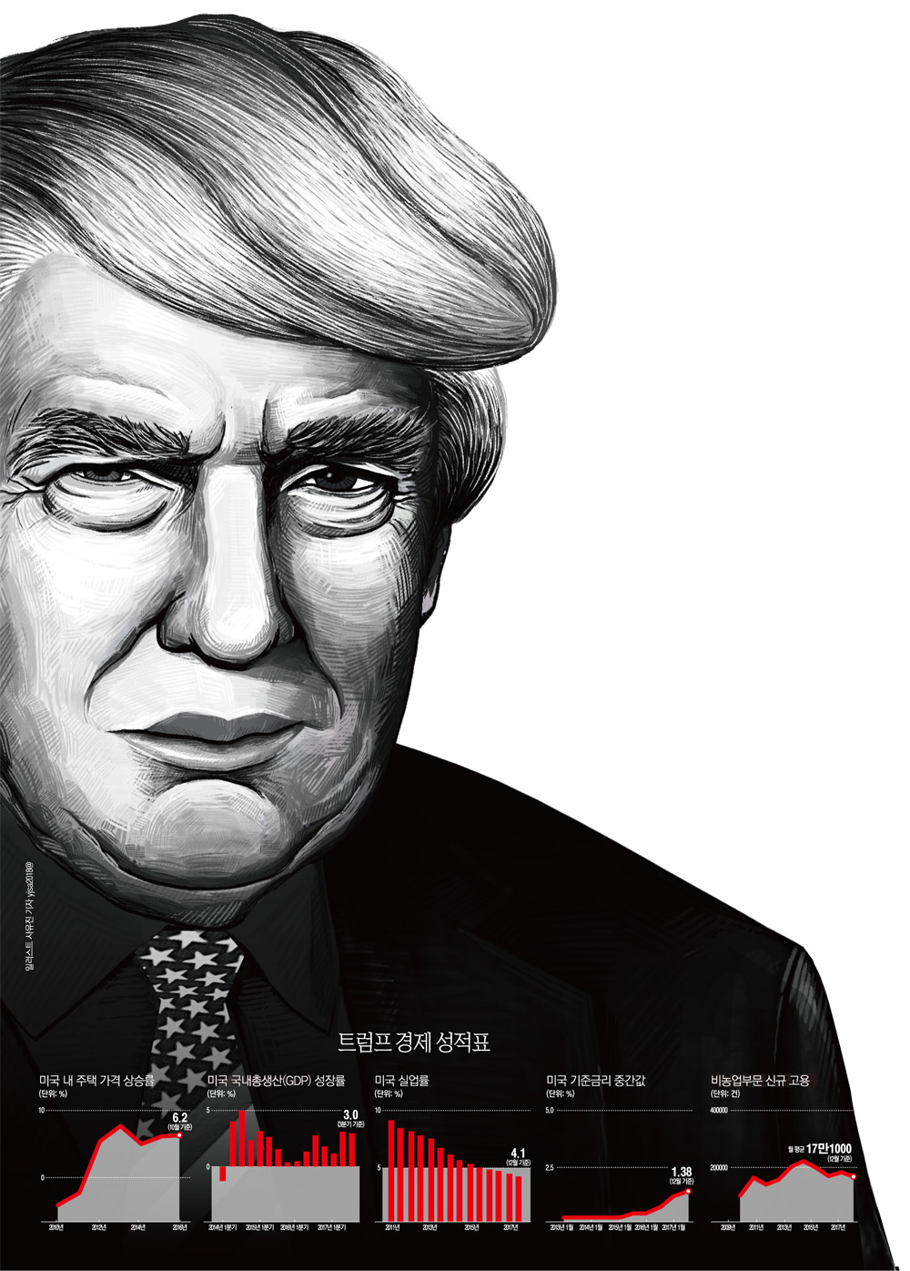 미 의회전문지 더힐은 오바마 정권을 뛰어넘는 트럼프의 경제 성적표를 미 언론과 전문가들이 충분히 인정하는 분위기라고 전했다. 트럼프와 적대적 관계였던 뉴욕타임스(NYT) 조차 “미 재계에 낙관주의 물결이 일고 있다”며 “새 공장 설립이 증가하고 있고, 이는 일자리 창출과 임금 인상으로 이어질 것”이라고 보도했다. 스위스계 증권사 UBS의 마이크 라이언 최고투자책임자(CIO)는 “대선 전에 나는 규제 완화와 감세를 외치는 트럼프의 주장을 의심했다”며 “그러나 세제개편법이 통과되면서 우려가 사라졌다”고 평가했다. 그는 “트럼프는 경제 부문에서 매우 높은 점수를 받을 자격이 있다”고 강조했다. 이지민 기자 aaaa3469@
