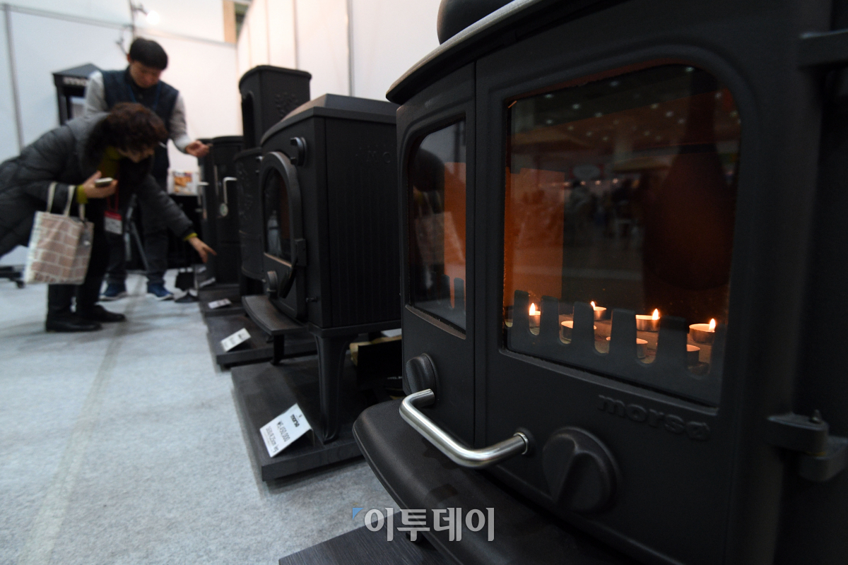 2018 하우징브랜드페어가 18일 서울 강남구 코엑스에서 열린 가운데 관람객들이 화목난로를 살펴보고 있다. 오는 21일까지 열리는 이번 박람회는 건축 및 인테리어 자재부터 에너지 절감 소재, 도시형 생활주택, 맞춤형 전원주택 시공 및 리폼에 이르는 다양한 건축 관련 제품을 통해 최신 건축 동향을 선보인다. 이동근 기자 foto@